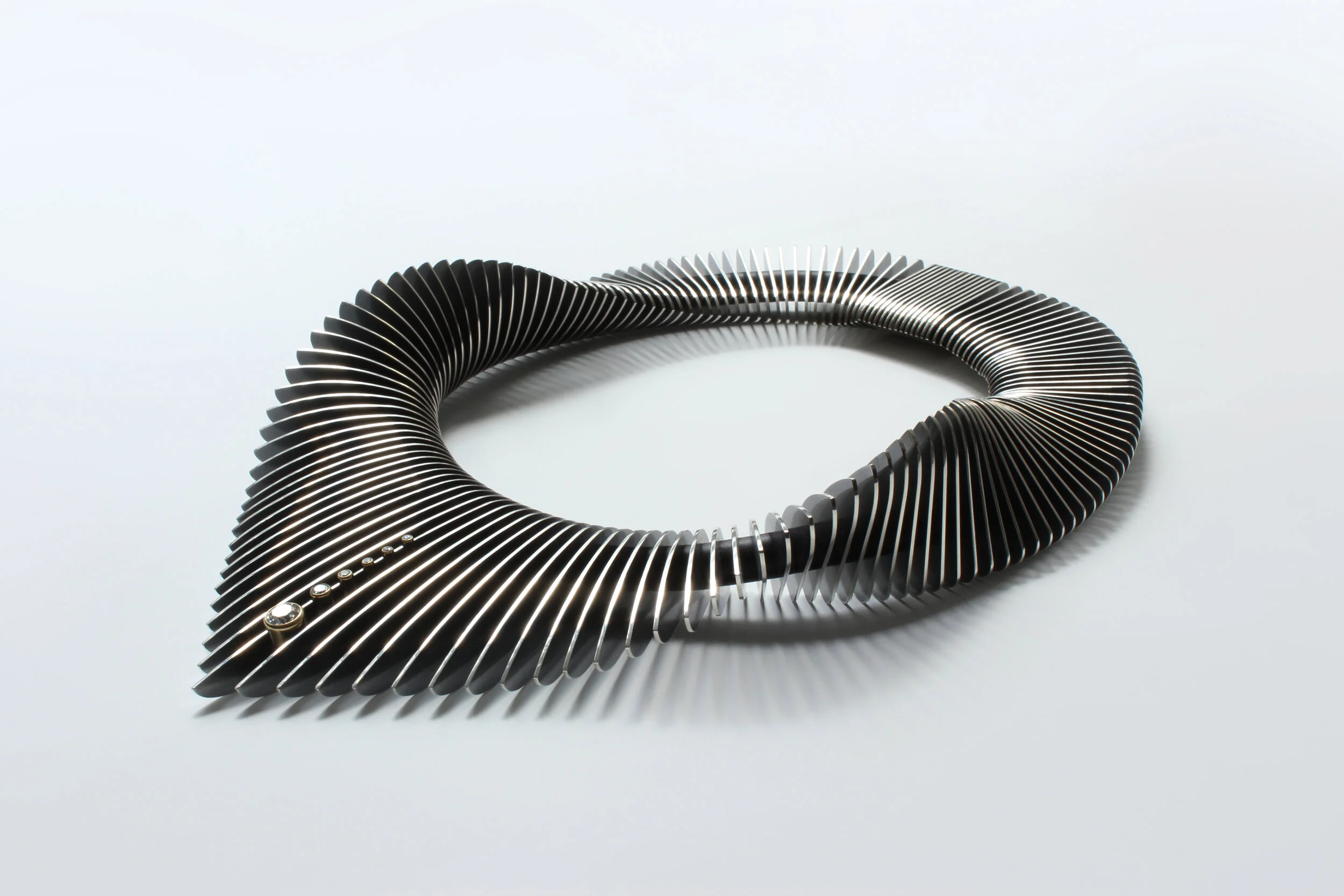 “John Moore is one of the most important modernist jewellers currently working in this golden age of design. He moves between large scale body sculpture and small scale wearable art with a poetic grace rarely seen. I wear his work with an undeniable joy.”